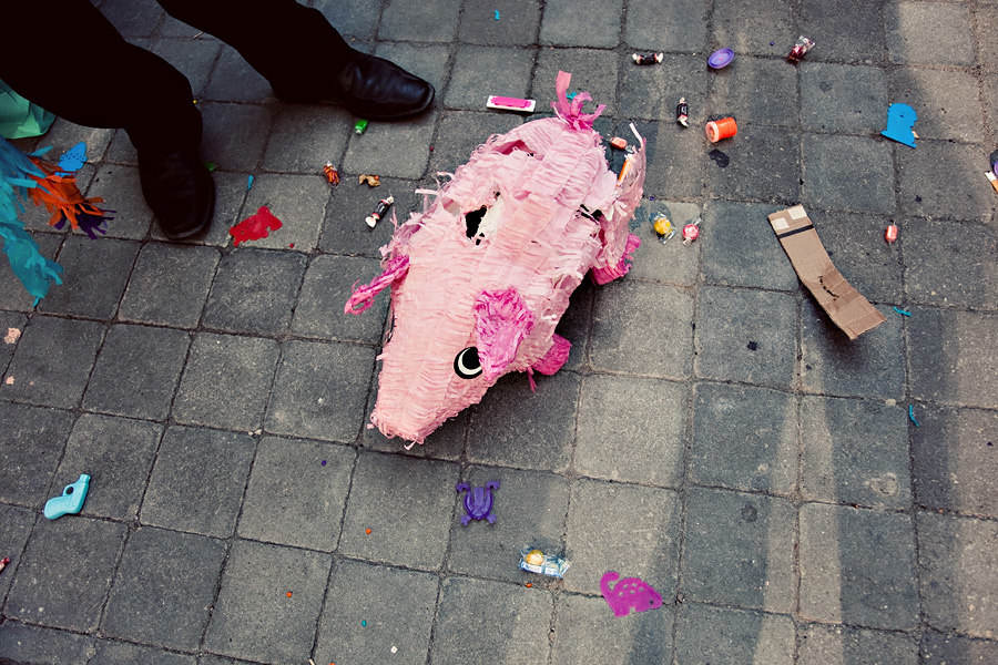 Everyone drank beers and smashed a pinata...